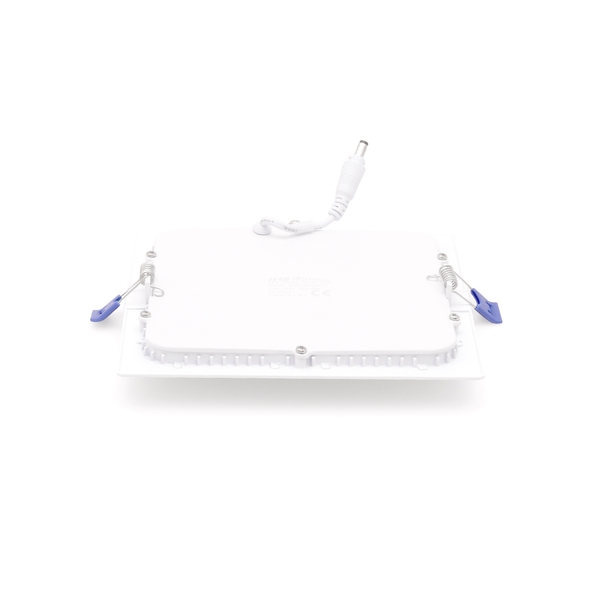 Semleges színhőmérsékletű, fehér színű álmennyezeti négyzet alakú LED panel. A lámpatest átmérője: 17 cm, a mennyezeti kivágás mérete: 15,5 cm