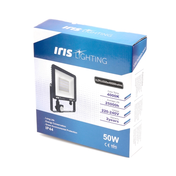 Semleges színhőmérsékletű, fekete színű mozgásérzékelős LED reflektor. Átlagosan 15 000 üzemórányi működéssel, 2 év garanciával